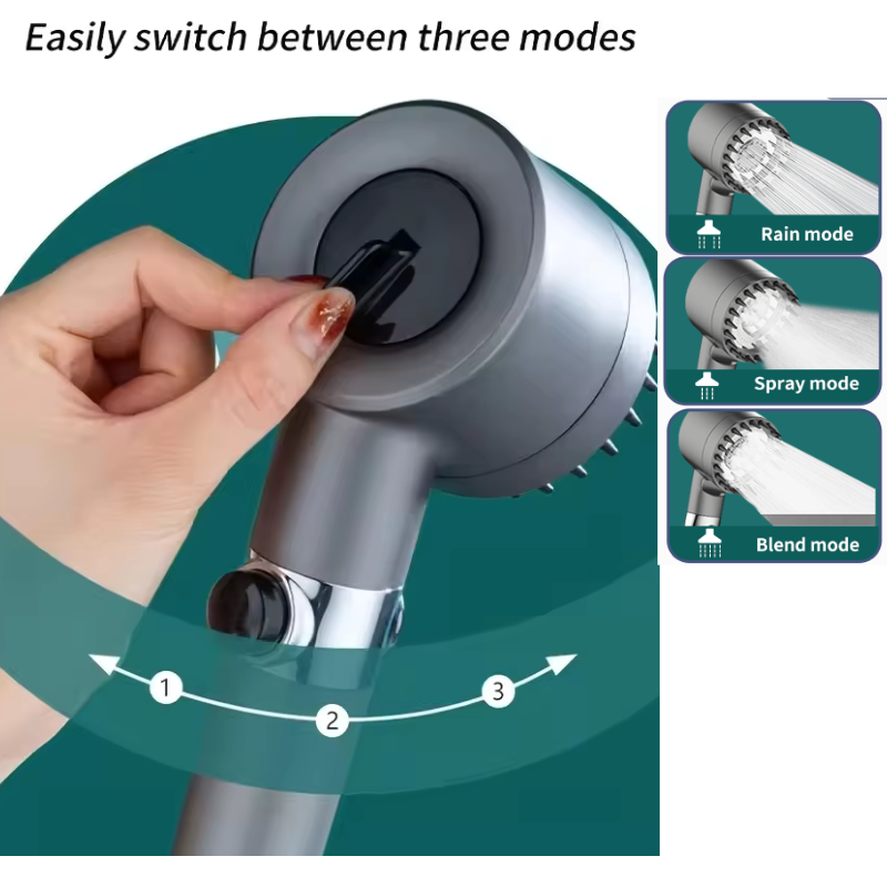 Cambia fácilmente entre los modos Lluvia, Rociado y Mezcla para adaptar el caudal de agua a tus necesidades. Disfruta de una experiencia de ducha personalizada y relajante, adaptada a tus necesidades.